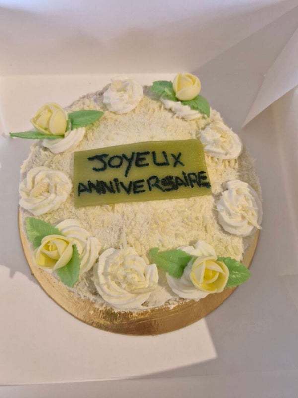 Pour une personalisation( joyeux anniversaire)sur le gâteau sa sera 5€ supplémentaire.
